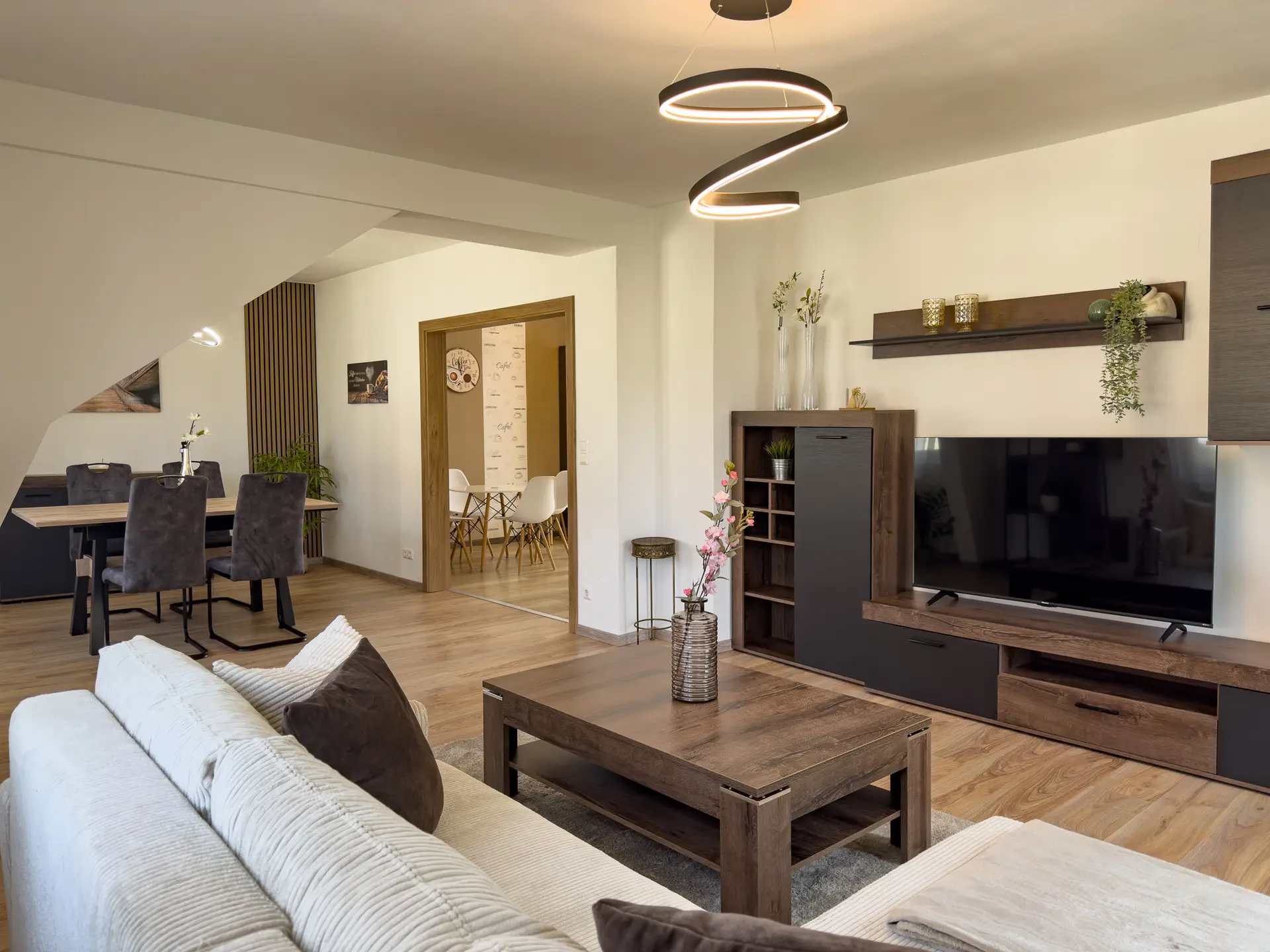 Welcome to TLA Apartment Ramstein 26 – your modern short-term home in the heart of Ramstein. Perfect for US military members and visiting families, this apartment combines comfort, convenience, and a central location. Offering two bedrooms, one guest shower room, and one full bathroom, the apartment is ideal for couples, small families, or business travelers. A private balcony provides the perfect spot to unwind, while a reserved parking space ensures easy access throughout your stay. Apartment Highlights The unit features a fully equipped kitchen, high-speed Wi-Fi, and contemporary furnishings. Guests benefit from thoughtful services such as regular room care, laundry facilities, and complimentary coffee. Every detail is designed to make your stay smooth and stress-free. Central Location Situated right in Ramstein’s city center, the apartment offers quick access to shops, cafés, restaurants, and local attractions. Whether you’re commuting to Ramstein Air Base or enjoying a quiet evening on the balcony, TLA Apartment Ramstein 26 is an excellent base for your stay. TLA Apartment Ramstein 26 delivers modern comfort, practical amenities, and a prime location – the perfect choice for your temporary lodging in Ramstein.